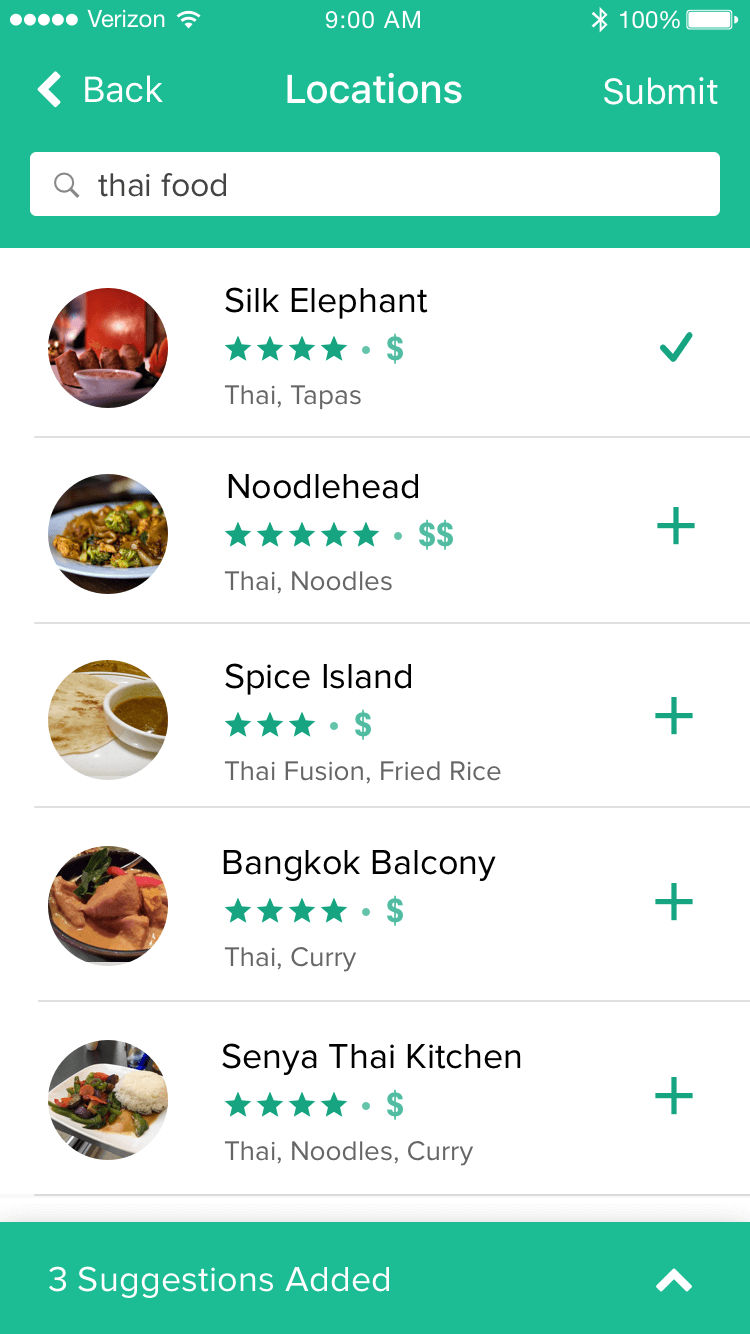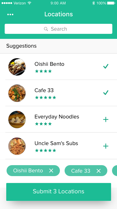 I wanted it to be really easy for people to take in a lot of different locations efficiently so that it's likely that they can gather 3+ places to suggest. The purpose of the app is to come to a decision and not waste time being too selective, so I wanted to make sure people wouldn't get caught up in this part of the process.